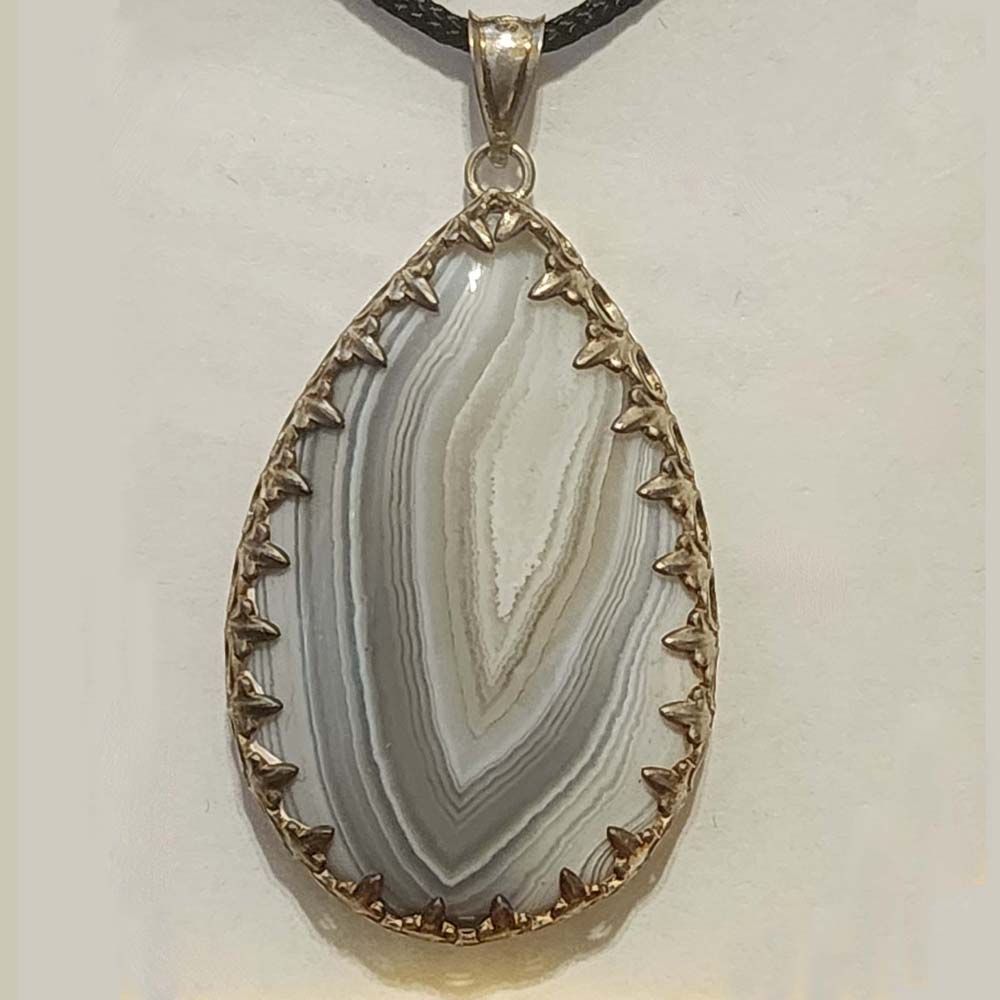 STUNNING GREY & WHITE BOTSWANA AGATE PENDANT, 5cm by 3 cm, IN.925 STERLING SILVER.